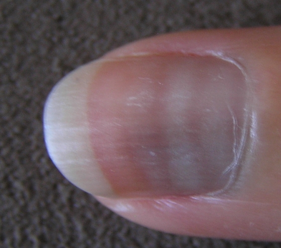 그리고 손톱을 만들어내는 손톱 가장 아래 반달 부분에 영양이 풍부한 혈액이 순환되어야만 합니다. 깨끗하지 못하고 끈적끈적한 건강하지 못한 혈액 또는 혈액순환이 좋지 않은 것도 손톱에 세로줄이 생기는 이유 중 하나입니다.